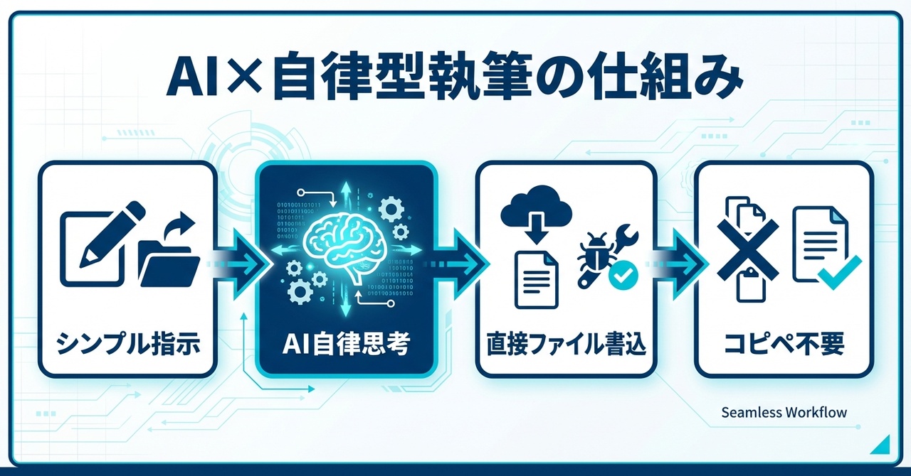 - ファイルの直接編集: AIが生成した文章を、そのまま適切なフォルダ(